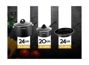 - Recubrimiento antiadherente tipo grafito, que facilita la cocción saludable y permite limpiar cada pieza en cuestión de segundos.